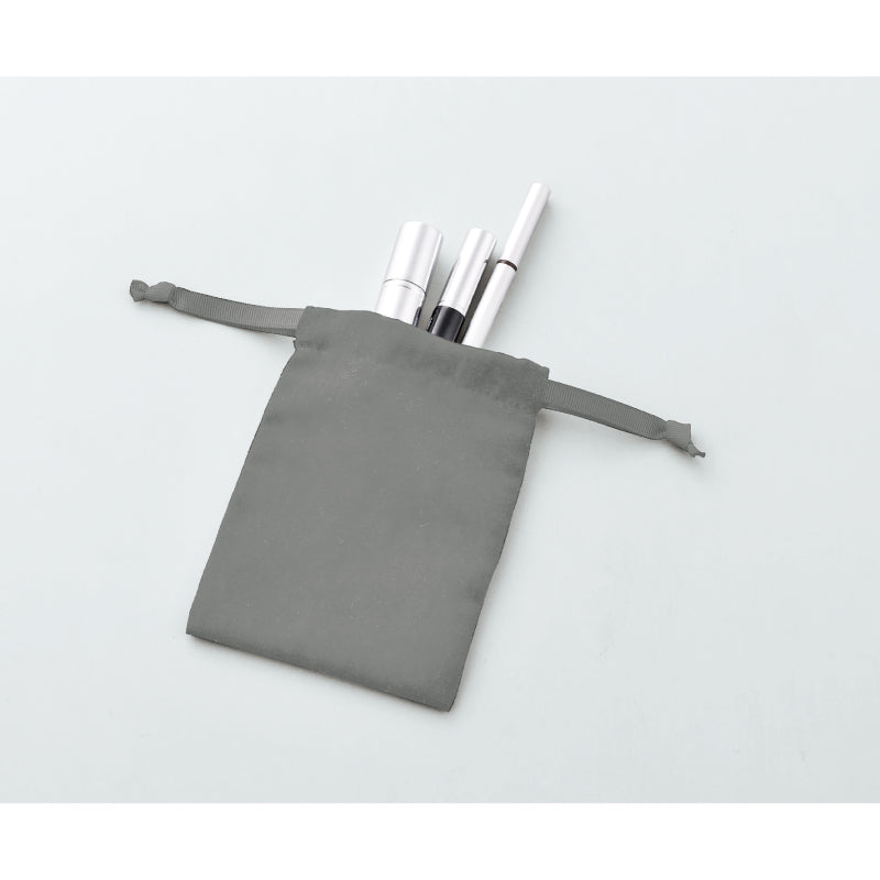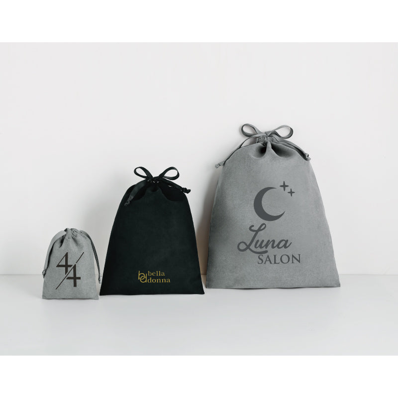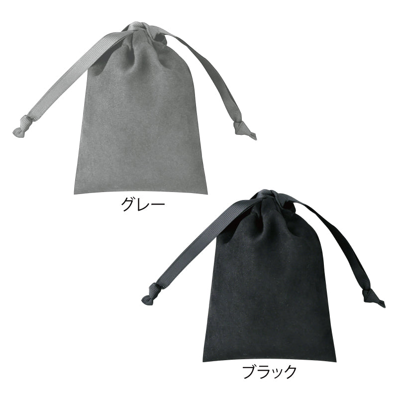 アクセサリーや化粧品の収納にぴったりなスウェード調の巾着バッグ。上品な質感と柔らかな手触りが特徴で、持っているだけで優雅な印象を演出します。光沢のあるリボンが華やかさをプラスし、ギフトやノベルティとしても最適です。