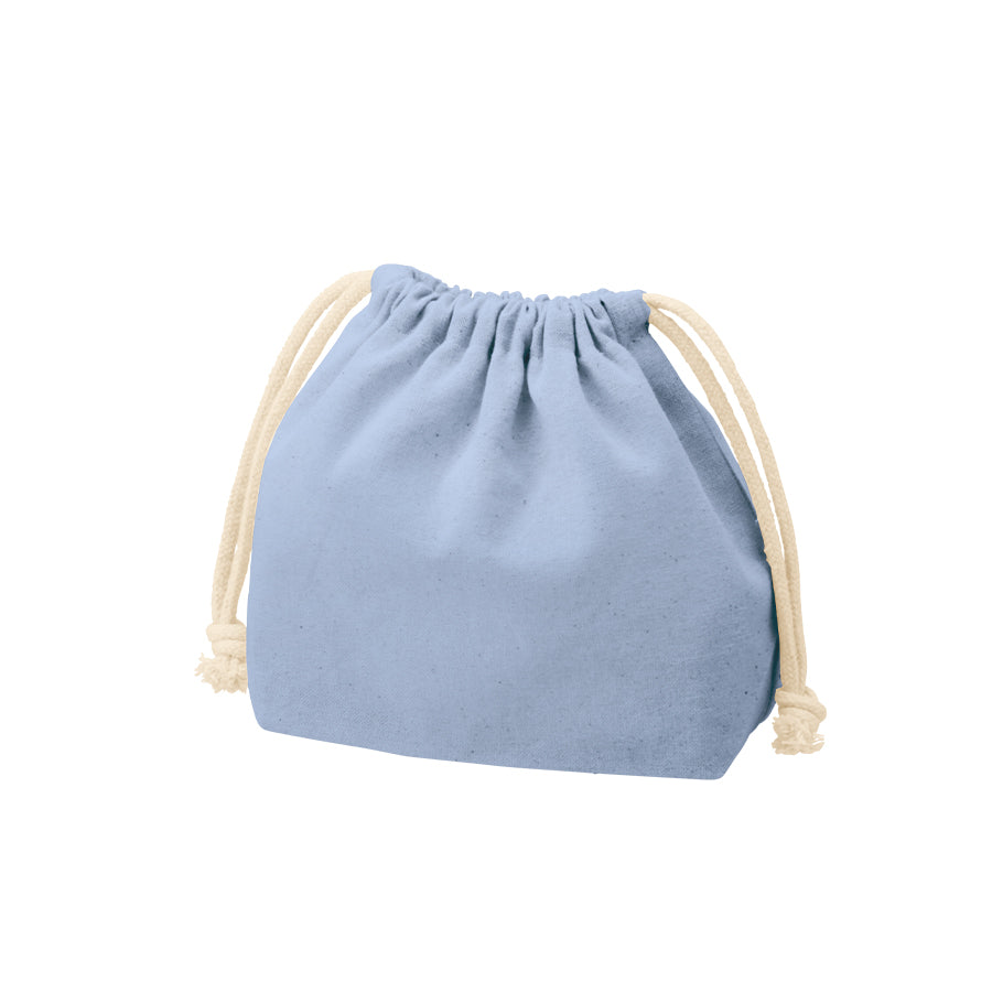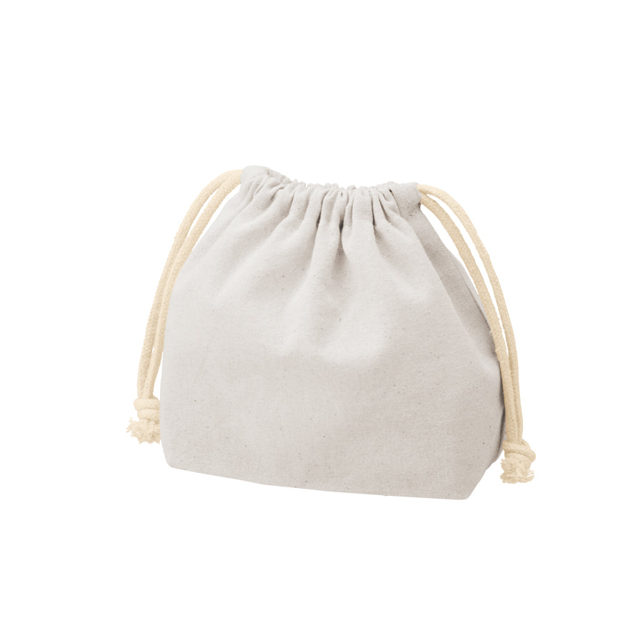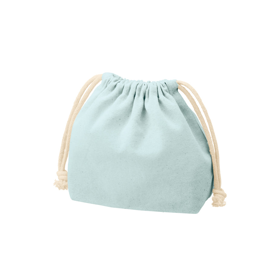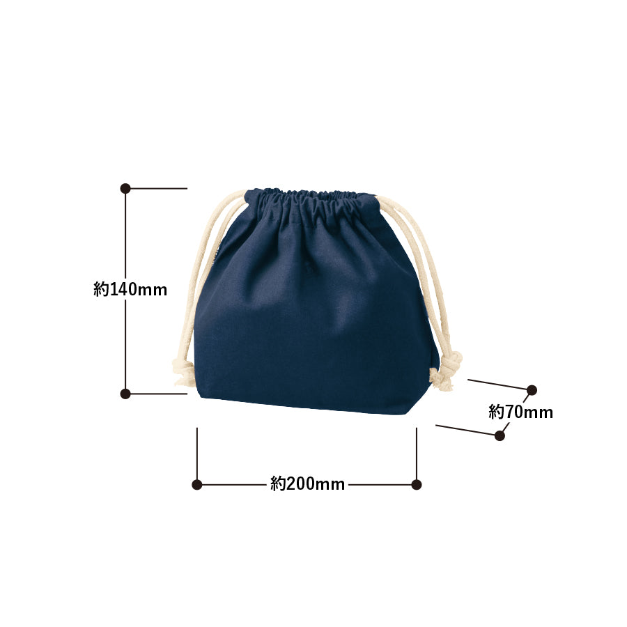 5オンスの厚手コットンを使用したマチ付き巾着ポーチに、オリジナルプリントを施して販売しています。 コロンとした可愛らしい形状と豊富なカラー展開で、コスメやギフトの包装に最適です。