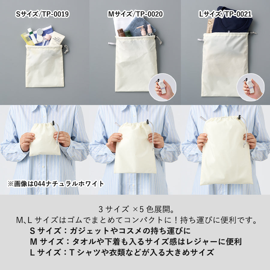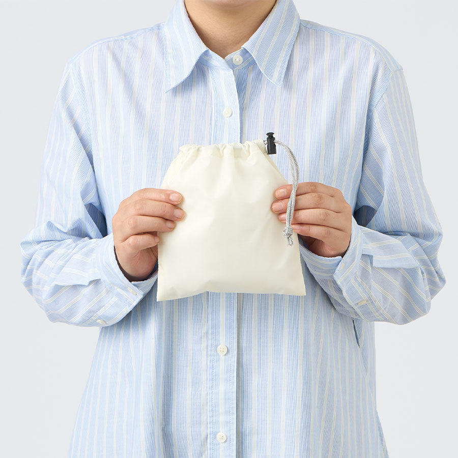 軽くて丈夫なポリエステル生地を使用した巾着に、独自のプリントを施して提供しています。 シンプルで滑らかな質感が特徴で、販促品や記念品、オリジナルグッズとして幅広くご利用いただけます。